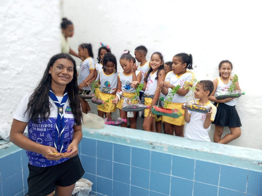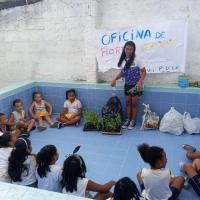 Interesse da escoteira Júlia Pedreira, de 12 anos, em ensinar crianças a fazer sua própria horta em casa, incentivando-as a ter mais contato com a natureza e conscientizá-las da importância dos 3R's.