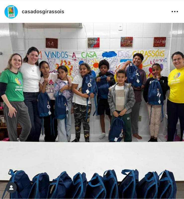A campanha "Kit do Bem" começou em 18/08/25, após levantamento das necessidades das 16 crianças atendidas pela Casa dos Girassóis, em Florianópolis. Com foco no autocuidado, foram arrecadados R$4.000,00 via PIX entre 28/08 e 12/09 Os kits, com itens de higiene de qualidade, foram adquiridos em marketplaces digitais e montados individualmente com mochilas e chaveiros personalizados. A entrega ocorreu em 09/10 e foi recebida com muita alegria por crianças, voluntários e equipe da instituição.