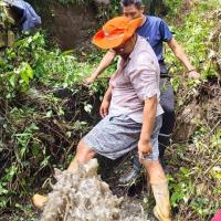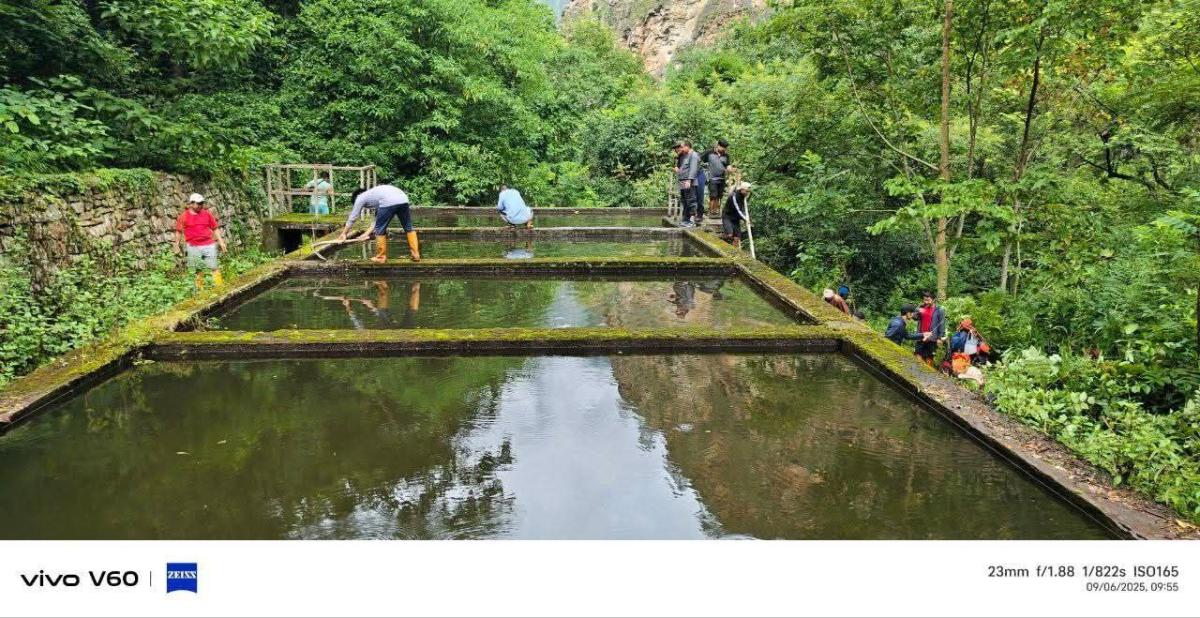 We executed our project with teamwork and dedication. The staff of Autsho CS, together with the community, began our journey at 6:30 a.m. and walked one and a half hours to reach the water source. We drained the tank and removed the mud and waste inside, which was the height of a person. We also cleared the bushes around the tank, completing the work by 2:30 p.m.