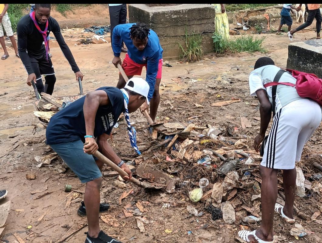 Depuis quelques temps les allentours de notre paroisse est devenu un lieu de dépôt d'ordure. C'est dans l'optique de résoudre ce souci qu'on a décidé de passer à l'acte en menant d'abord une grande activité d'assainissement des lieux avant de passer à un cadrillage puis un reverdissement de cet espace sans toutefois omettre l'inclusion des membres du Quartier afin de les sensibiliser sur les dangers liés à l'insalubrité pour qu'ils en prennent conscience.
