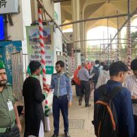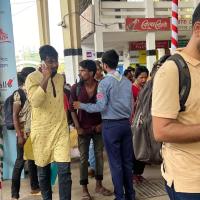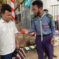 রেলওয়ে স্টেশনে যাত্রী সেবায় স্কাউট।