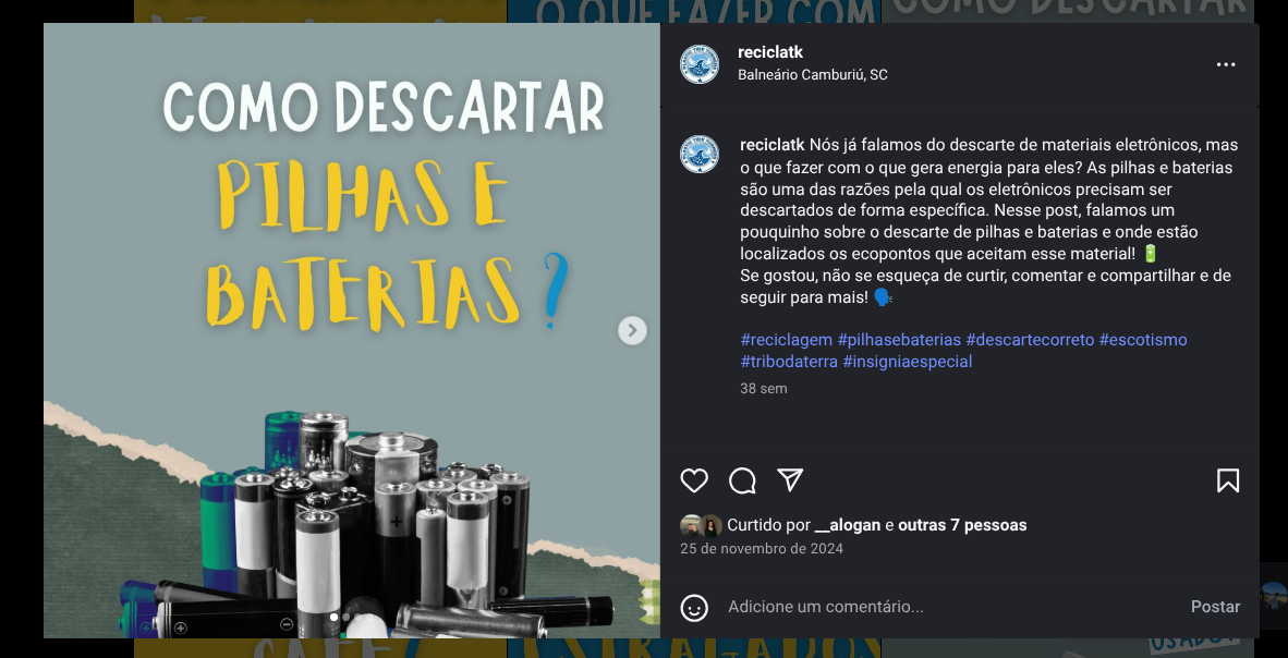 Aprendemos o descarte correto de lixos não convencionais, percebemos o quanto a população não tem conhecimento sobre, entendemos que as redes sociais são ferramentas poderosas para difundir informação.