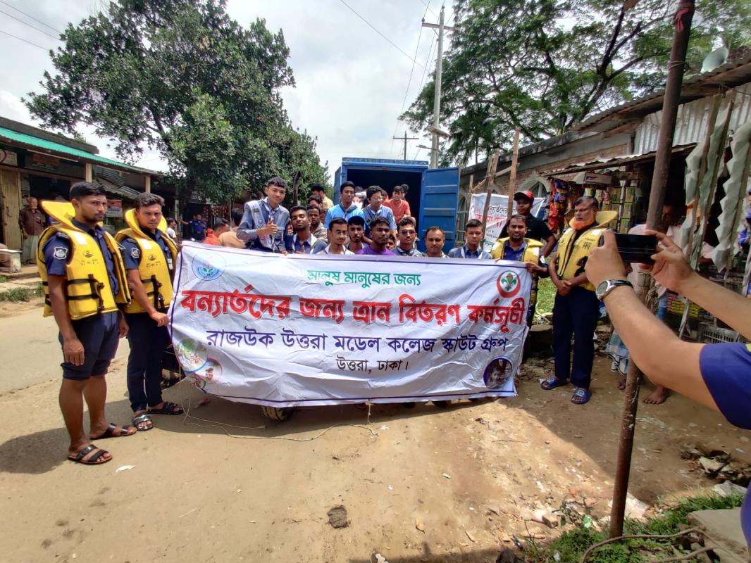 Flooding is a common disaster in riverine Bangladesh, impacting thousands annually. People lose homes, farmland, and income sources, and face shortages of safe drinking water and food in shelters. Inspired to help, we, the scouts of Rajuk Uttara Model College Scout Group, decided to assist the flood-affected people of Cumilla in August 2024.