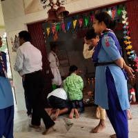 Some were given task to clean the temple arena, some where given task to handle the devotees