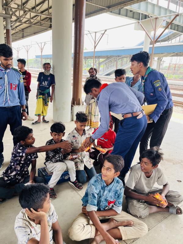 ঈদ এর খুশি সবার জন্য। এই ঈদে সবাই মিলে আন্দোলন উল্লাস করুক। আমরা অগ্নিবীণা রেলওয়ে মুক্ত স্কাউট গ্রুপ এর পক্ষ থেকে গত ৭/০৪/২০২৫ হতে ৯/০৪/২০২৫ পর্যন্ত মোট তিন দিন দৈনিক পাঁচ ঘণ্টা করে রেলওয়ে যাত্রী সেবা প্রদান করেছি। গত ৮/০৪/২০২৫ তারিখ বাংলাদেশ স্কাউটস দিবস উপলক্ষে স্টেশনে থাকা দরিদ্র মানুষ ও ছোট ছোট শিশুদের মাঝে খাবার বিতরণ করেছি। এই প্রকল্পের মাধ্যমে টেকসই উন্নয়ন অভীষ্ট এর লক্ষ্য ২ যথা: "খুদা মুক্তি" পালিত হয়েছে। এই প্রকল্পে ৮০ জন পথ শিশুদের মাঝে খাবার বিতরণ করা হয়েছে।
