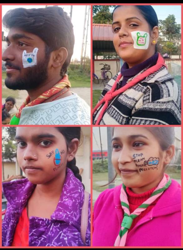 We paint some picture and slogan on our face to spread awareness to boycott plastic. It better to use paper jut or clothes bag instead of plastic bags or it better to use botol but not plastic botel