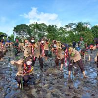 In commemoration of the Scout Anniversary at my school, our Scout organization collaborated with the Marine Corps to carry out a mangrove planting activity. This event coincided with the Marine Corps Anniversary, allowing both celebrations to take place hand in hand, with each organization marking its special day. Funded by the Marine Corps, the project also involved experts from the Ministry of Environment and Forestry. Coached by experts before planting mangroves.