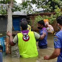Scout: Beside the flood affected people.