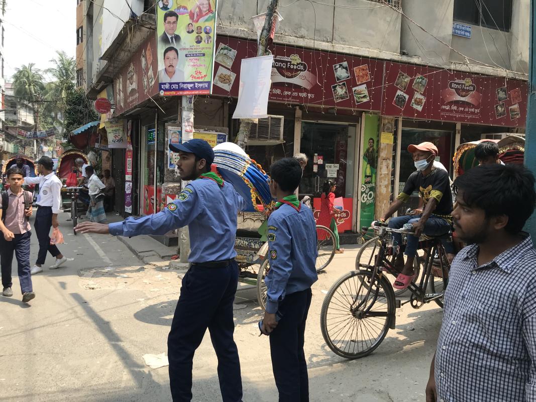 Scout trying to reduce traffic blockade.