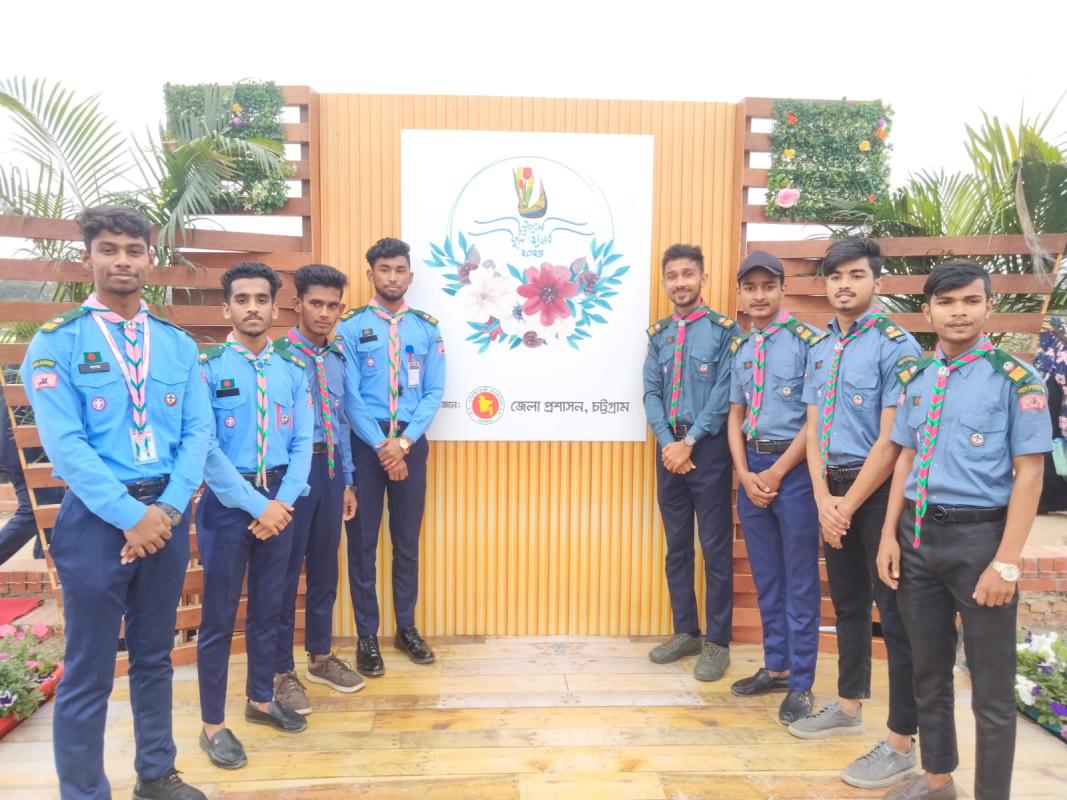 Rover Scouts of Sitakunda Degree College served at the Sitakunda Upazila Flower Festival by managing crowds, guiding visitors, ensuring safety, and maintaining cleanliness. Through teamwork and discipline, the event was kept smooth, safe, and enjoyable for all.