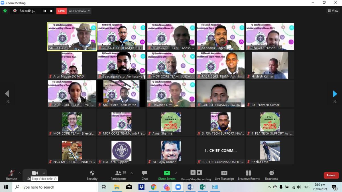 The International Day of Peace was a 4 day programme celebrated virtually in Fiji. The project started on Sunday 19th September, 2021 with a pledge to protect our environment and tree planting in various districts of Fiji was done. Day 2 focused on district kevel virtual progamme while day 3 was celebrated as a nation .