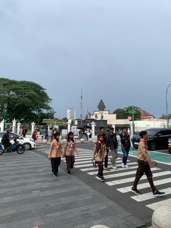 This was an annual program held by the Scout Regency Council of Yogyakarta City, collaborating with the Police and other stakeholders. Participants from the rover scouts helped the public cross roads safely during the peak holiday season at Christmas and New Year.