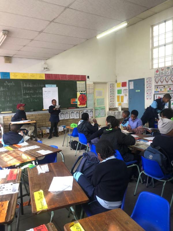 Learners practised reading aloud, writing, and sharing their work in a supportive environment. Yeboneers encouraged participation and helped learners overcome hesitation, especially those who could read but lacked the confidence to do it publicly.