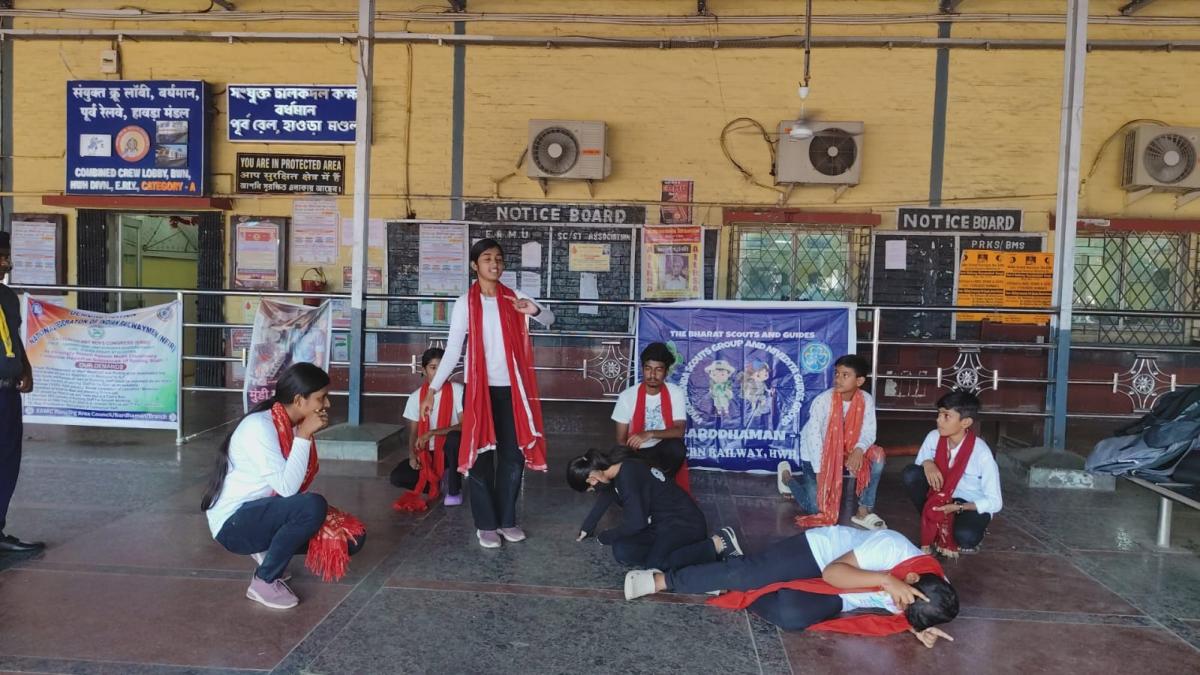 We planned and rehearsed the street play with our scout members, focusing on strong messages and visuals to highlight the dangers of plastic pollution. On the day of the event, we performed at Barddhaman Junction Railway Station, where we attracted a large crowd. The play used real-life scenarios, slogans, and emotional appeal to engage the audience. Pamphlets were also distributed with tips on reducing plastic use. The response was encouraging, and many people appreciated the initiative.
