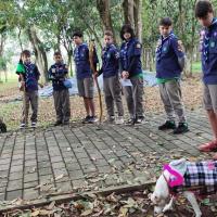 Começamos fazendo cartazes e espalhando nas escolas ,na sede do nosso grupo escoteiro,fizemos campanhas na internet e na comunidade pedindo tampinhas plasticas que não seriam mais utilizadas e virariam lixo.Vendemos as tampinhas e rerveteu em dinheiro e fizemos a entrega para o CADA - Cães Abandonados de Araquari, no mesmo dia que realizamos o MUTECO, recolhemos o lixo do parque do centro da cidade. No total foram arrecadados 105 kg de tampinhas, que vendidas deran o valor total deu R$ 105,00.