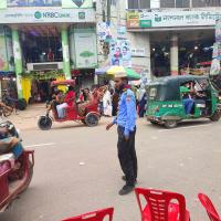 It was difficult to execute but we managed to do it. Generally Sonagazi is small in size but there are more autorickshaws and CNG powered autos and the roads are not suitable for big vehicles. As a result, a large vehicle entering the city creates a long traffic jam. None of the autorickshaw drivers are aware of the traffic laws. We urge them to obey the traffic. And in the case of big cars, we work as a team, one person at each place. As a result we are able to prevent traffic jams in it.