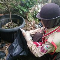 The project was carried out by 58 scout members through an environmental clean-up activity. They collected waste, separated it into organic and inorganic types, and disposed of it properly. This effort showed their concern for cleanliness and their responsibility to protect the environment.