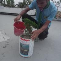 On April 9, 2024 I planted some trees on the roof of my house. First we collected some seedlings from the market and planted them. Then give enough water to the plant.