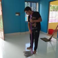 Our work began with cleaning the monastery grounds. We removed garbage and unnecessary materials to ensure a clean and peaceful environment for the devotees. We then cleaned the sitting areas .Next, we arranged sitting mats , especially for the elderly and the monks, making sure everyone had a respectful and comfortable place to take part in the ceremony.