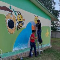 Pedimos apoyo para la donación de libros, los cuales organizamos por temas y nivel académico y etiquetamos. Fuimos también a pintar los murales que el personal docente de la Primaria solicitó en los muros de los salones y finalmente entregamos los libros en donación a la escuela.