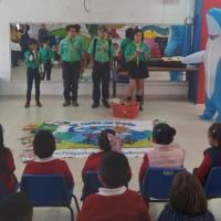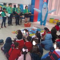 Primero realizamos campañas de recaudación de libros donados en nuestras escuelas, en nuestro local Scout y con amistades y familia y luego los relacionamos y etiquetamos. También fuimos al kinder a pintar los murales con los dibujos que nos dijeron las maestras del kinder. Lo mejor de todo, fue entregar los libros a las niñas y niños de la escuela, a los que les leímos cuentos. Fue una experiencia muy bonita el realizar este Proyecto para nuestra Insignia Mensajeros de la Paz.