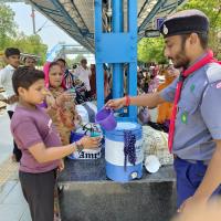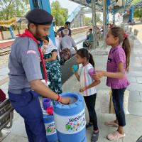 To do this project, first of all we took all the permissions and then according to the service time of the project which was from 10 am to 3 pm, we collected the necessary materials so that we could distribute water. In this project, along with our team, we provided water to all the passengers and employees present on the trains and platforms. In this, we helped people by distributing cold water for free and also told them ways to avoid heat and heat wave. People also appreciated our work.