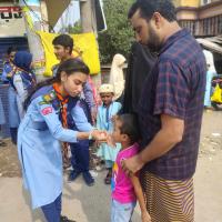 Scouts were educated on the 'Expanded Program of Immunization' (EPI) and the issues of Vitamin A vaccination. Red Vit-A capsules were given to children over 12 months & less than 5 years, whereas Blue Vit-A capsules were given to children less than 12 months to 6montha children