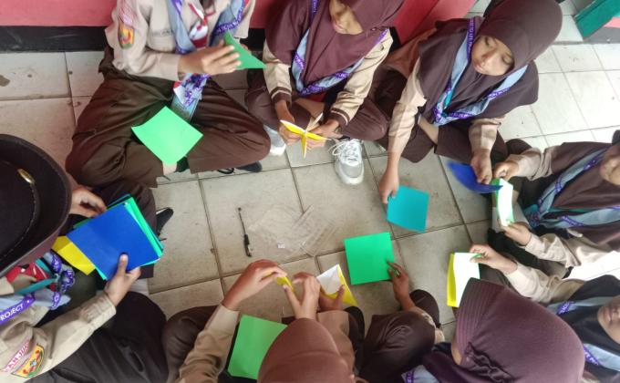 ANGGOTA PRAMUKA MEMBERSIHKAN LINGKUNGAN SEKOLAH