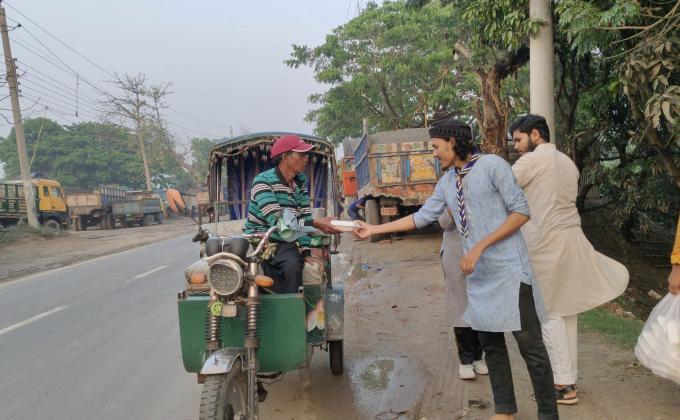 পথচারী ও রিকশা, অটো চালকদের মাঝে ইফতার বিতরণ