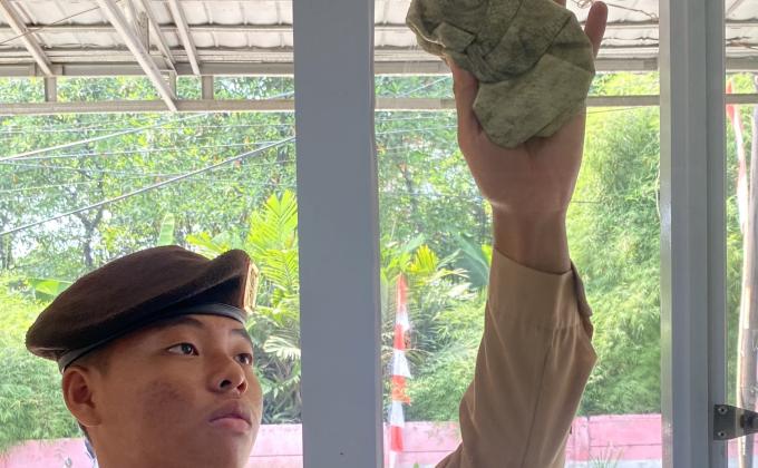 Membersihkan sampah yang ada di sekitar.