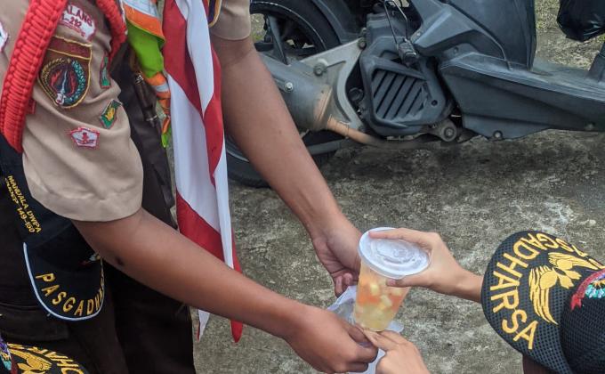 Pramuka berbagi takjil gratis ke masyarakat
