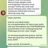 Hello everyone, my name is syafia safa putri ramadhania , PASPRAMKANSA member from team 1. There are 3 materials that I got from the SOLIDARITAS 21 event. Therefore, I will explain a summary of these 3 materials. The first material is "Using Social Media Wisely and Positively" which is about how we can use technology for positive purposes and not harm ourselves or others. By thinking critically, maintaining ethics, and spreading kindness, we can create a healthier and more enjoyable digital environment. Continuing with the second material, namely "Become a Creative Youth and Recognize Your Potential", Creativity can be applied in various areas of life. Utilizing creativity to develop one's potential, either through a process of reflection, training and experience. Translating understanding and self-development into real action by building targeted and measurable action plans. The third material, namely "Freedom to Learn and Prepare Yourself for the Golden Generation in 2045" are two interrelated things. As Scouts, we have an important role in realizing Indonesia's dream of becoming a developed country. By taking advantage of existing opportunities, developing ourselves, and always doing good, we can be part of the golden generation that will lead Indonesia to a brighter future.