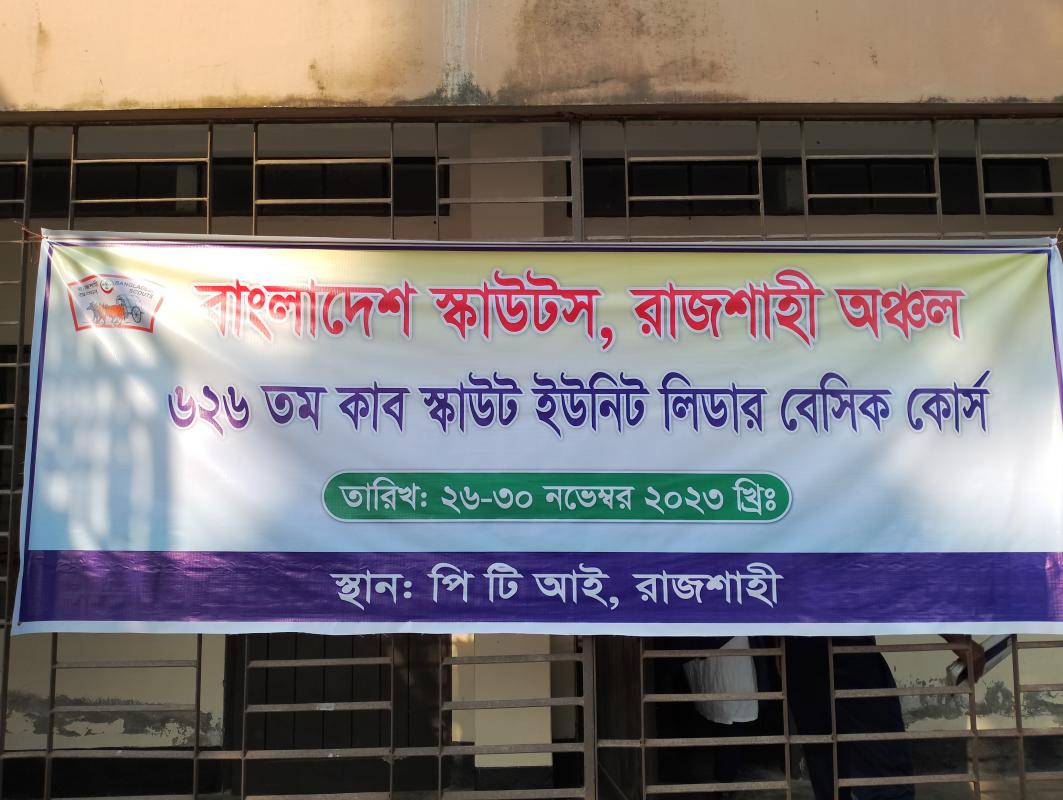 ২৬-৩০ নভেম্বর ২০২৩ রাজশাহীর পিটিআই ট্রেনিং সেন্টারে অনুষ্ঠিত হয়েছে ৬২৬ তম কাব স্কাউট ইউনিট লিডার বেসিক কোর্স। যেখানে প্রশিক্ষনার্থী হিসেবে ছিলেন ৫৯ জন প্রাথমিক স্কুলের শিক্ষক। এবং ভলেন্টিয়ার হিসেবে ছিলেন থ্রি স্টার ওপেন স্কাউট গ্রুপেরর২ জন সেবা স্তরের রোভার।