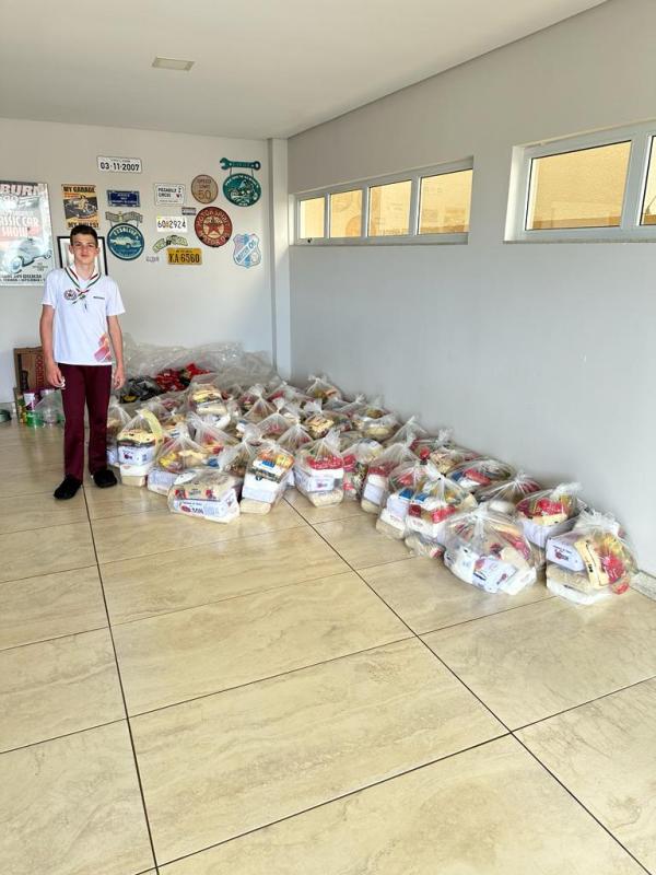 Projeto realizado pelo Escoteiro Benício Tobera Carraro, do Grupo Escoteiro Pé Vermelho – 01/PR, de 08 de agosto de 2023 a 30 de novembro de 2023, buscando conquistar as insígnias Ação Comunitária e Mensageiros da Paz. Pensando em ajudar a população mais carente da minha cidade com alimento pois com os anos vem tendo uma maior dificuldade em acessar. Meu projeto teve iniciou dia 08 de agosto de 2023, comecei o projeto pela distribuição de caixas de papelão pela cidade. Após isso divulguei em minhas redes sociais e pedi a amigos de meus pais que doassem alimento ou dinheiro para me auxiliar na causa. No dia 30 de novembro de 2023 eu e meus pais reunimos todo o alimento dando um total de 2.200 Kg, então entregamos todo esse alimento por todos os cantos da cidade. Acredito que eu tenha alcançado diversas famílias com dificuldade e que fiz uma pequena diferença no mundo. Com todo este projeto aprendi a ser mais grato pelo que tenho e espero que tenho passado este sentimento a pessoas a minha volta.