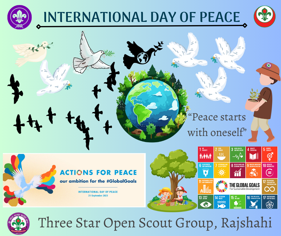 ২১ সেপ্টেম্বর, আন্তর্জাতিক পিস ডে -২০২৩ পালন করেছে রাজশাহীর থ্রি স্টার ওপেন স্কাউট দল। পুরো বিশ্বের সাথে তাল মিলিয়ে তারা এই দিনটি উদযাপন করেছে।