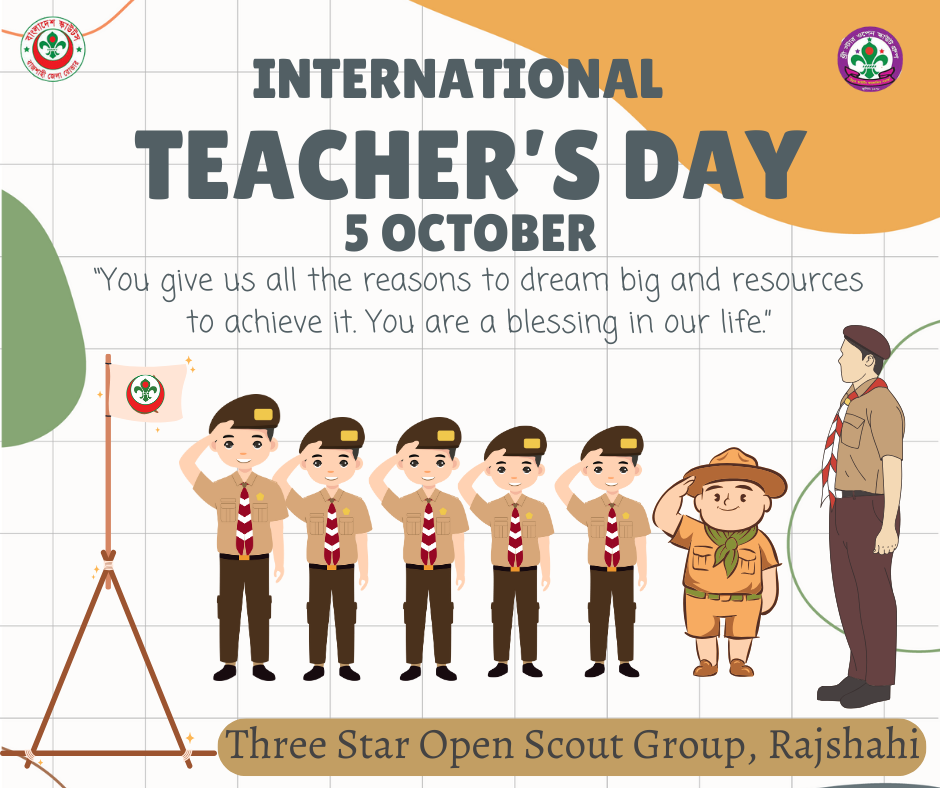 পুরো বিশ্বের সাথে মিল রেখে বাংলাদেশেও পালিত হয়েছে আন্তর্জাতিক শিক্ষক দিবস - ২০২৩। রাজশাহীতেও তার ব্যতিক্রম হয় নি। ০৫ অক্টোবর ২০২৩, রাজশাহীতে থ্রি স্টার ওপেন স্কাউট গ্রুপ পালন করেছে দিনটি।