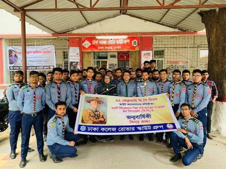 ২২/২/২০২৩ তারিখে ঢাকা কলেজ রোভার স্কাউট গ্রুপের আয়োজনে ১৬৬ তম বি.পি দিবস পালন করা হয়।