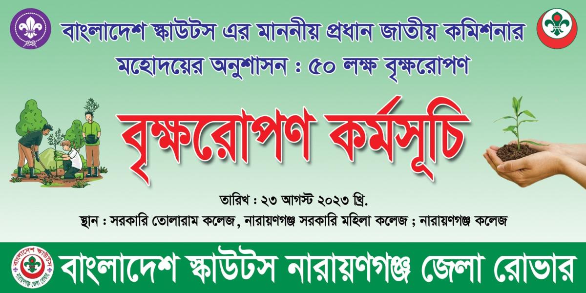 বাংলাদেশ স্কাউট নারায়ণগঞ্জ জেলার রোভার এর উদ্যোগে বৃক্ষরোপণ কর্মসূচি ২০২৩।