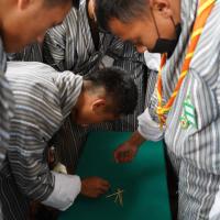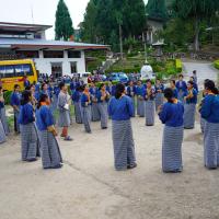 The program began with the opening of the Scout Fest at 2:55 pm, followed by the lighting of a butter lamp by the school principal, who also serves as the commissioner. The Nazhoen scouts performed a peace song, setting the tone for the rest of the event. All teachers and students participated in various stations designed to promote peace and scouting values. These stations included learning about the history of scouting and Peace Day, knot-tying, first aid for responsible life-saving, jungle survival skills (with a fun bamboo dance), games, and scout yells and songs.