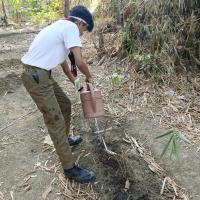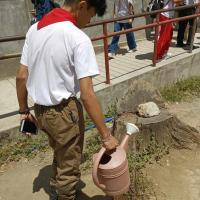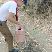 Cleaning the environment watering plants