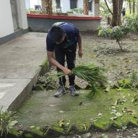 We clean our area with natural things like leaf and stick , the all waste material are collected and thrown into the corner 👍 and we get precautions for plants don't get damage when cleaning ✌️☺️