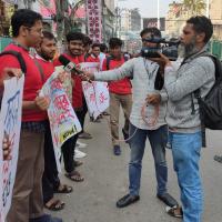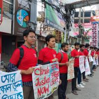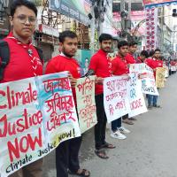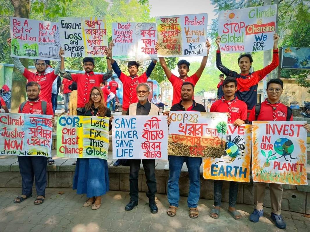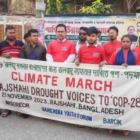Members of Barendra Youth Forum and some Rover Scouts on 21 November conducted climate march at Zero Point More area of Rajshahi. They are doing this march focusing on Tanor upazila of Rajshahi and drought, they are demanding that the COP-28 conference should provide funds for drought and Climate justice is guaranteed.