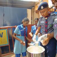 Sairam District Scouts and Guides, Distributing buttermilk to road workers and the public on 03.06.2024 This act of kindness not only provided much-needed refreshment in the heat but also demonstrated a deep sense of community service. Such initiatives are a great reward, highlighting the values of empathy and generosity in the young mind. Their efforts are truly praiseworthy and set a wonderful example for others to follow.