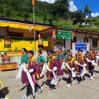 Cultural Festivity at Tarphel Primary School: Celebrating Heritage and Tradition On a bright and vibrant day in September, the grounds of Tarphel Primary School came alive with colors, music, and traditional dances. The occasion? The school’s Investiture Ceremony, coinciding with a grand cultural showcase that highlighted Bhutan’s rich heritage. Students dressed in traditional Bhutanese attire, proudly performed a beautifully choreographed traditional dance. The boys and girls, adorned in colorful costumes, moved with grace and elegance, reflecting the pride they have in their cultural roots. The school courtyard was decked out in bright yellow and green banners, adding a festive touch to the event. The national flag fluttered in the gentle breeze, a symbol of unity and pride for the entire school community. School leadership and staff sat at the edge of the performance area, enjoying the show and supporting their students. The Investiture Ceremony itself marked an important milestone, where student leaders were officially entrusted with their new roles and responsibilities, a step toward building leadership qualities from a young age. The day was filled with a sense of joy and accomplishment, as the students not only demonstrated their talents in dance but also their dedication to preserving the traditions that define Bhutanese identity. It was clear that events like these foster a strong sense of community, encouraging both students and teachers to work together in harmony while celebrating their shared culture.