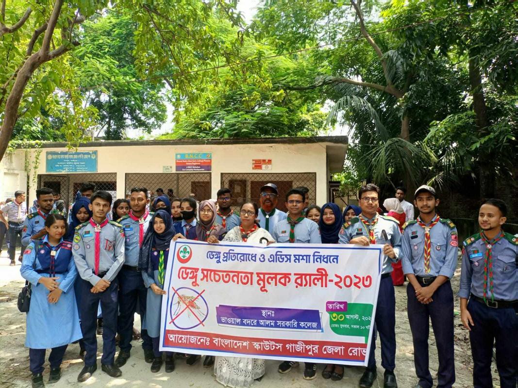 বাংলাদেশ স্কাউটস, গাজীপুর জেলা রোভার কর্তৃক আয়োজিত ডেঙ্গু সচেতনতামূলক র্যালি উক্ত র্যালি উদ্বোধন করেন প্রফেসর মাসুদা শিকদার কমিশনার গাজীপুর জেলা রোভার উক্ত প্রোগ্রামে গাজীপুর জেলা রোভাররা অংশ গ্রহণ করেন