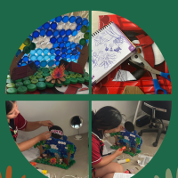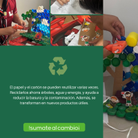 Llevé a cabo una recolección de tapas plásticas, ya que representan un material altamente reutilizable y adecuado para proyectos de reciclaje. Me comuniqué con diversas farmacias locales solicitando la donación de cajas de cartón y papel. Logré reunir una cantidad con los cuales fue posible construir una maqueta. Para llevarla utilice otros materiales complementarios como silicona y tijeras. Conté también con la colaboración de un familiar, El resultado final fue una maqueta.