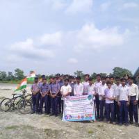 The Bharat scouts and guides , NF RAILWAY , Alipurduar District Association organized a cycle rally from divisional headquarter to Dima bridge with Nation flag to celebrate Gar Gar tiranga . There we hoisted our BSG flag and new group were introduced . After that we did a swachh Bharat abhiyan for surrounding clean. Nearby four o'clock lowering the flag we break off the program .