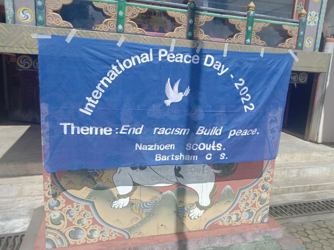 Bartsham Central School, Trashigang Bhutan celebrated the International Day of Peace. Two speakers were selected to deliver a speech (in Dzongkha, National language; and English language) on the importance of marking the day, maintaining peace in society, and saying no to racism (Dzongkha and English language). Later, all the staff and students took a peace pledge of maintaining peace in society and say no to racism.