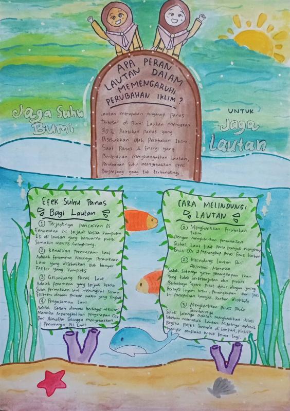 saya mengirim poster yang bertemakan menjaga laut dari suhu panas bumi. di poster ini saya juga menjelaskan bagaimana solusinya dan apa saja efek dari suhu panas bumi untuk lautan
