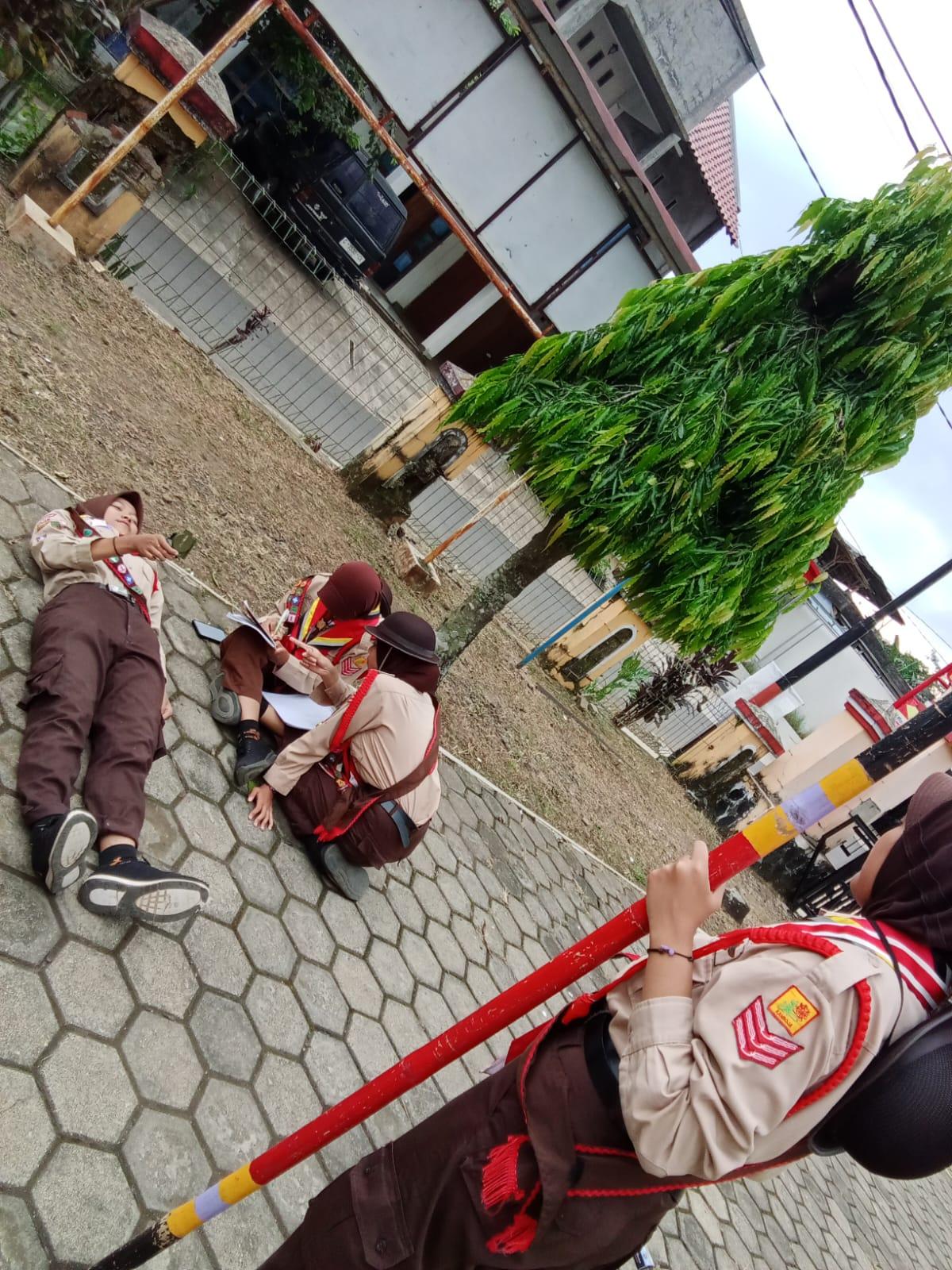 Today, namely Friday, May 3 2024, we are carrying out scouting activities, we carry out this activity every Friday. this Friday, we got material, namely learning to estimate height and compass. We carried out this activity in the classroom and field, then we formed 3 teams, namely the Cambodian team, the Kantil team, and the Bougainvillea team. Here I joined the Cambodian team. after that we entered the compass material which was filled in by our supervisor. then we entered the second material, namely estimating height, we did that in our school field. after that we were tested per group by our supervisor. and after everything was finished we were allowed to go home